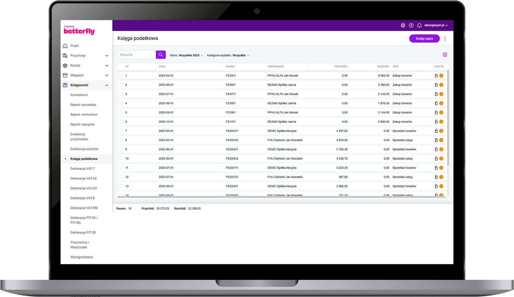 W programie Comarch Betterfly umieściliśmy szereg udogodnień dla przedsiębiorców, którzy chcą prowadzić księgowość samodzielnie: