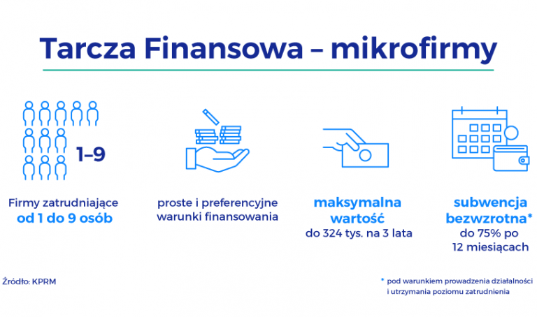 Polski Fundusz Rozwoju uruchamia Tarczę Finansową dla firm i pracowników, którzy ucierpieli wskutek pandemii koronawirusa. Nowy program pomocowy w ramach Tarczy Antykryzysowej jest skierowany do ponad 670 tys. polskich przedsiębiorstw, łącznie to 100 mld zł, z czego nawet 60 mld zł to środki bezzwrotne. Celem programu jest ochrona miejsc pracy i zapewnienie firmom płynności finansowej w trudnym okresie. Dla firm, które zatrudniają od 1 do 9 pracowników trafi 25 mld zł, z czego zakładana kwota środków bezzwrotnych to ok. 16 mld zł. Małe firmy będą miały szybki dostęp do pieniędzy w postaci prostych subwencji wypłacanych za pośrednictwem banków. Ma to zapobiec zatorom płatniczym, utracie płynności i konieczności zwalniania pracowników.
