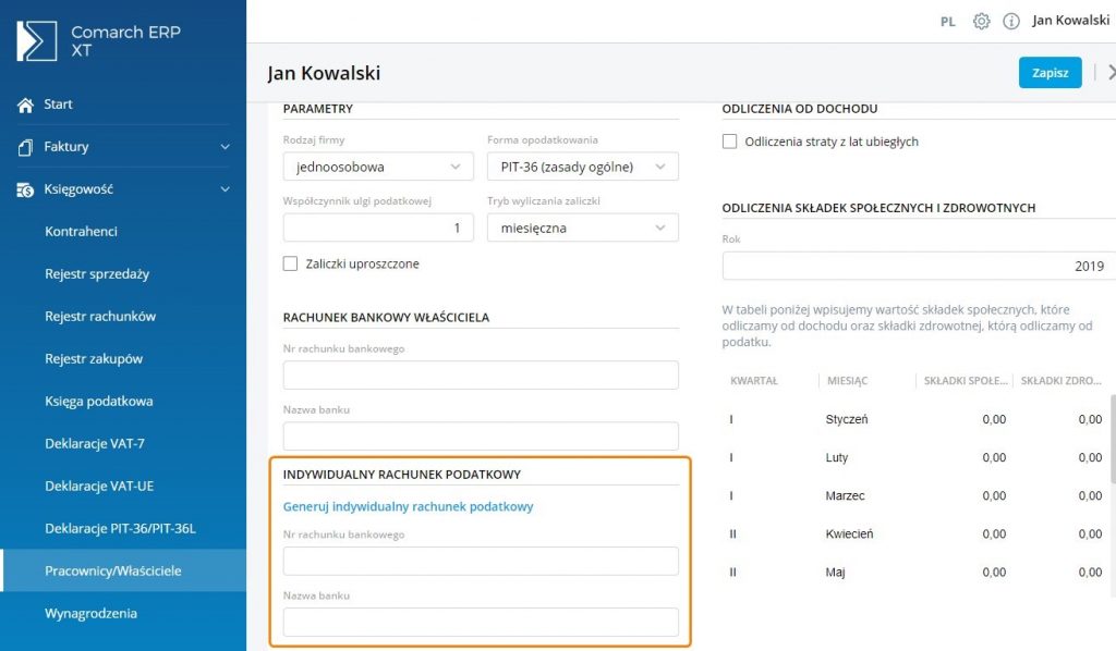 Można tez wprowadzić ten numer na karcie właściciela w zakładce Parametry w sekcji Indywidualny rachunek podatkowy.