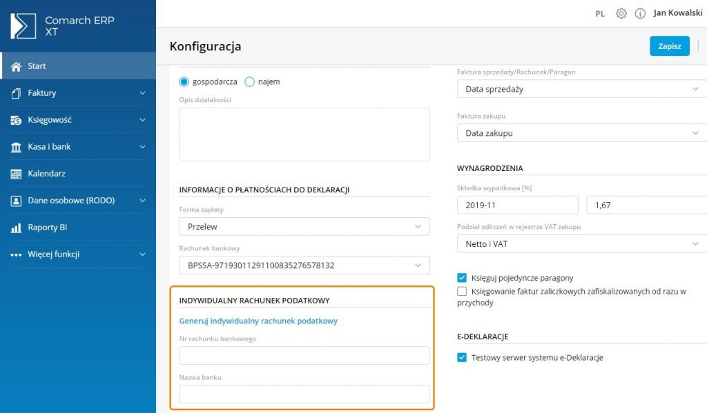 Aby płatności przechodziły na poprawny numer mikrorachunku należy uzupełnić w Konfiguracji, na zakładce Księgowość w sekcji Indywidualny rachunek podatkowy.