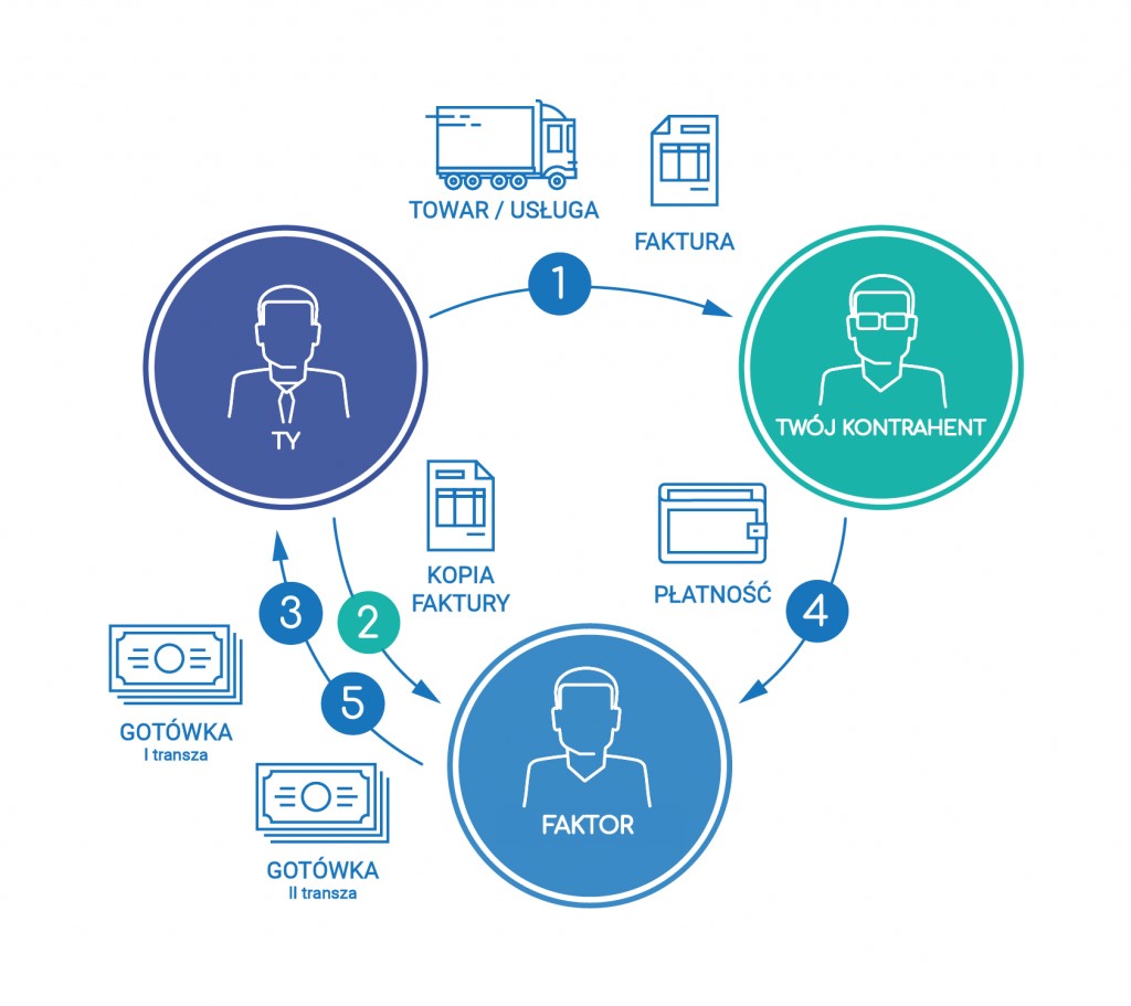 Faktoring polega na wcześniejszym wypłaceniu przez firmę faktoringową (faktora) zaliczki z wystawionej kontrahentowi faktury z długim terminem płatności (np. 30-dniowym). Dzięki temu przedsiębiorca od razu dysponuje środkami finansowymi, które może wykorzystać w swoim biznesie – czy to na nagłe niespodziewane wydatki, na inwestycje, czy na pokrycie bieżącej działalności. W faktoringu chodzi przede wszystkim o przyspieszenie płatności. Pieniądze, które otrzymuje się od faktora to de facto zaliczka na poczet późniejszej wpłaty od kontrahenta. Nie ma to więc nic wspólnego z kredytem. Faktoring nie powoduje zadłużenia i nie wpływa na zdolność kredytową.